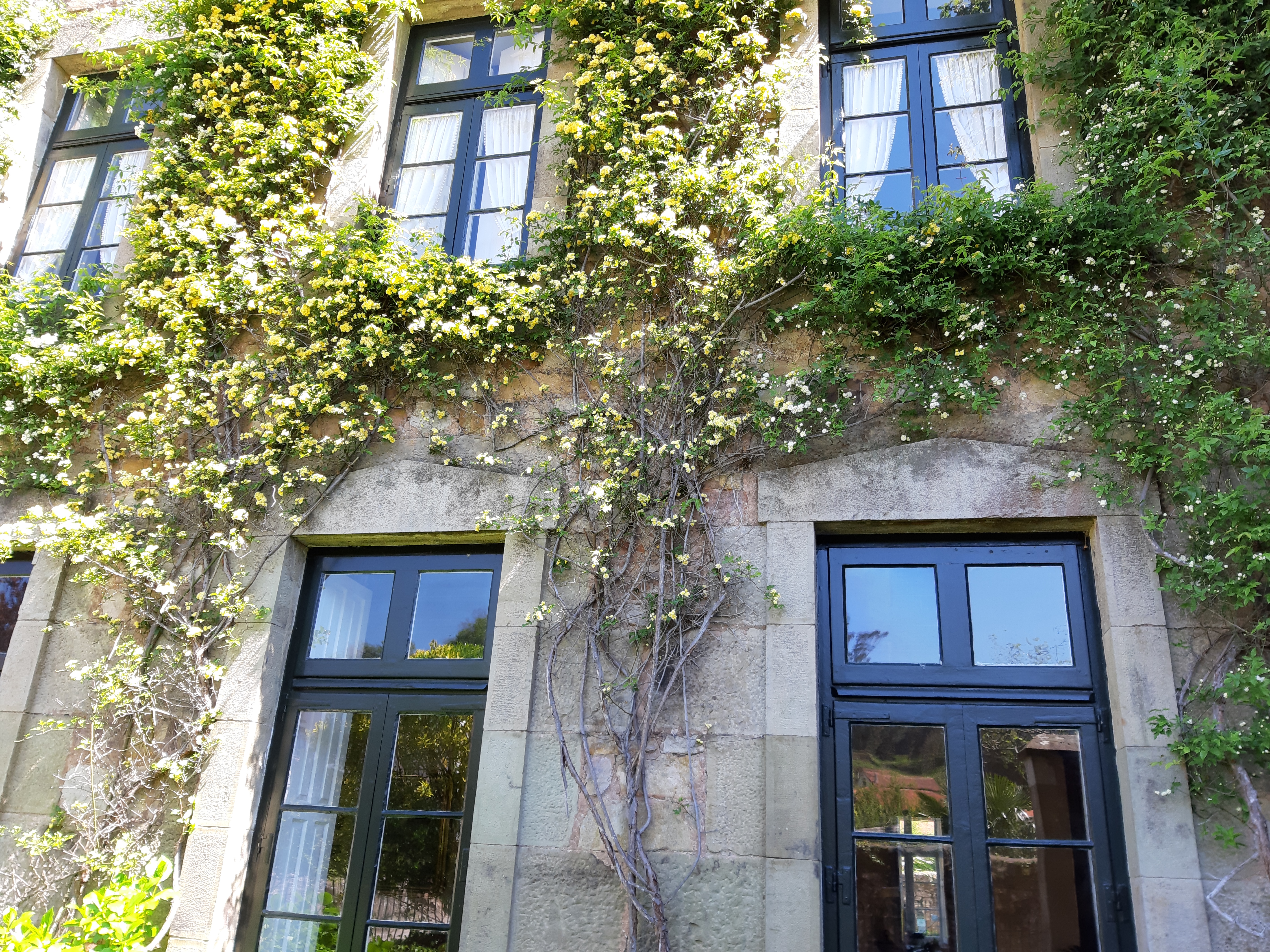El jardín, los grandes árboles y el río rodeando un antiguo edificio de 1884, catalogado como sin